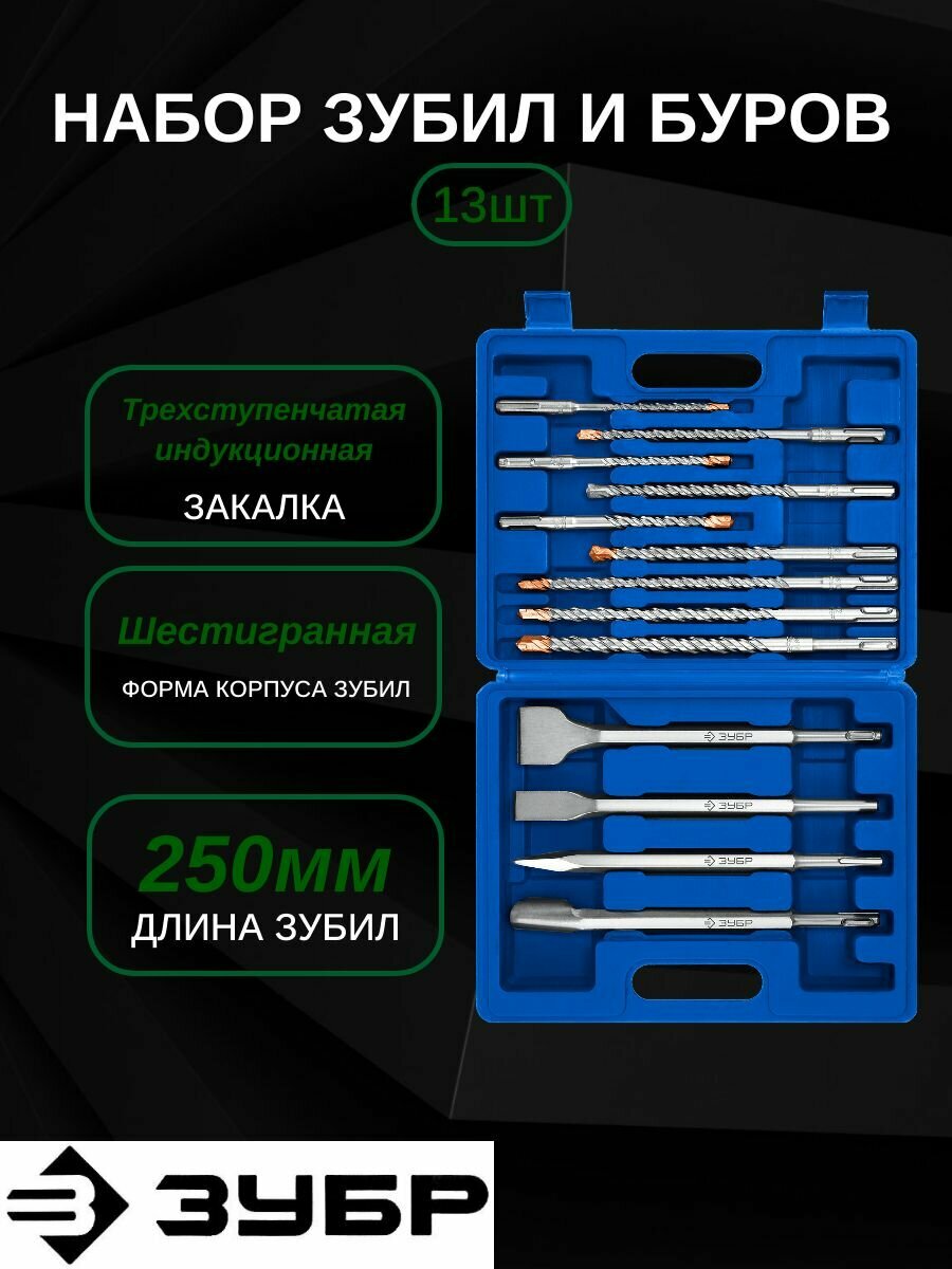 ЗУБР SDS-plus Набор зубил и буров, 13 шт