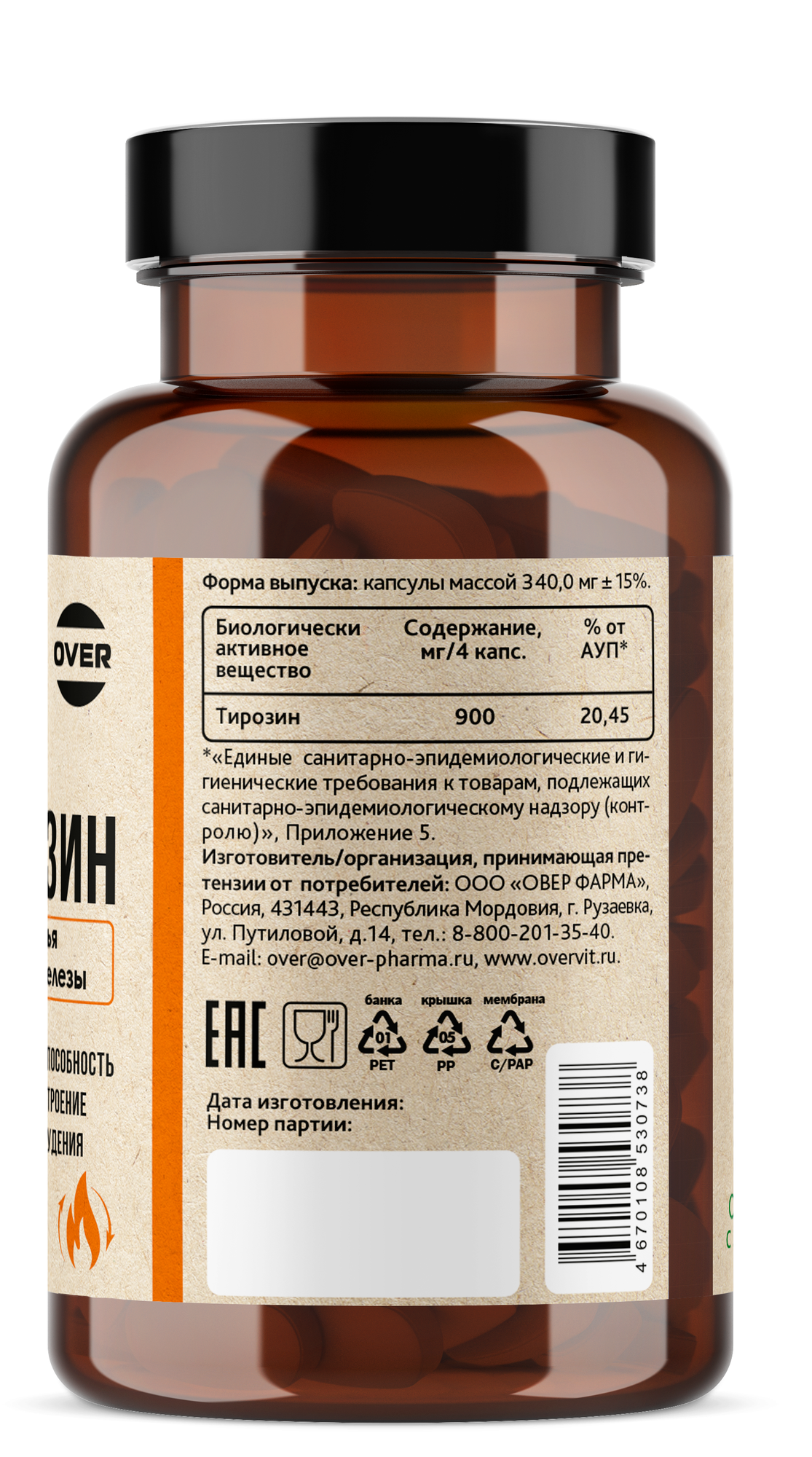 Купить L-Тирозин, поддержание эндокринной системы, для щитовидной железы, аминокислота, 60 капсул