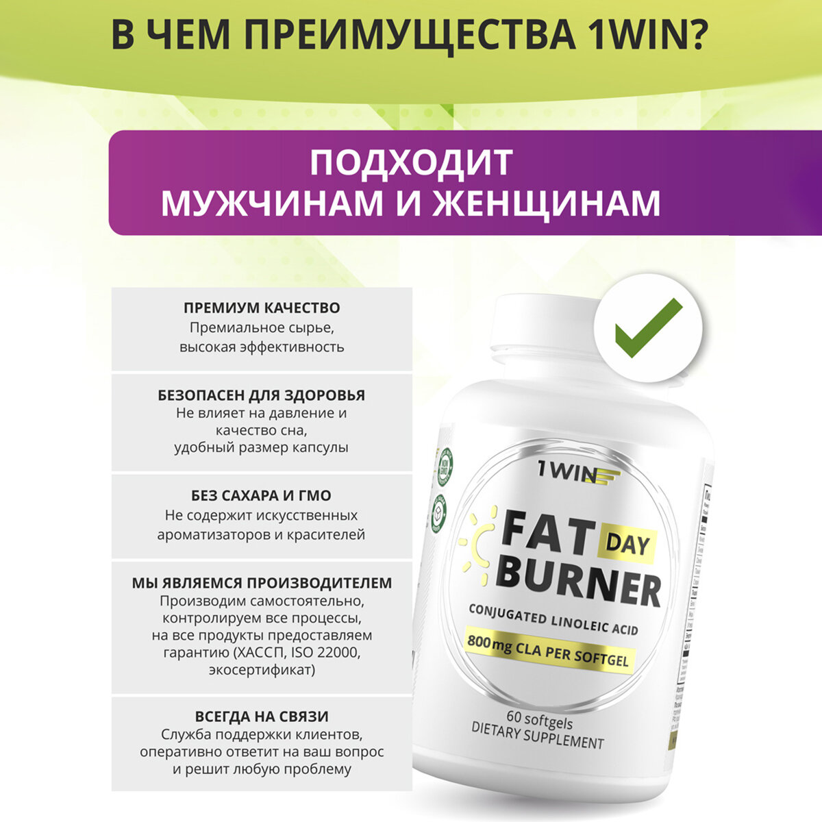 Купить 1WIN Жиросжигатель в капсулах Fat Burner Day дневной на основе CLA, Таблетки для похудения 30 шт, cпортивное питание, для похудения, сушки, снижения и контроля веса