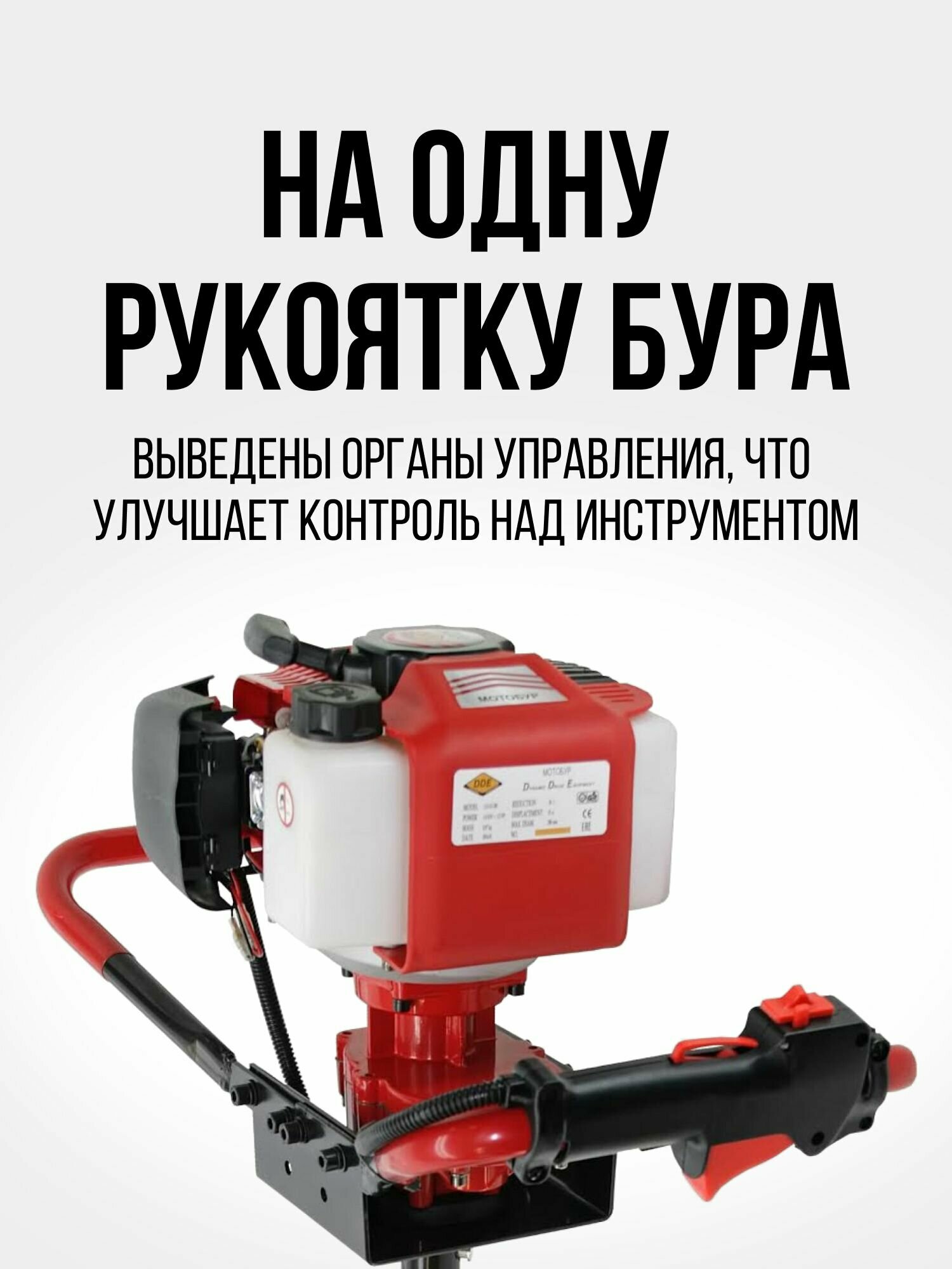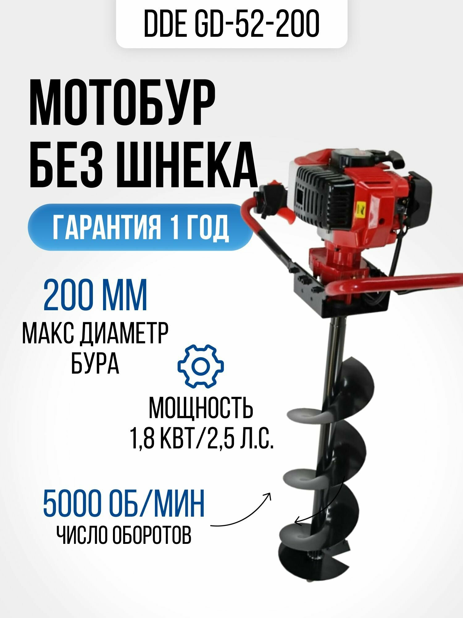 Мотобур DDE GD-52-200 (двухтактный 52 куб.см., 1,8 кВт, редукция 34:1, масса 9,8 кг, макс. диаметр 200 мм) без шнека
