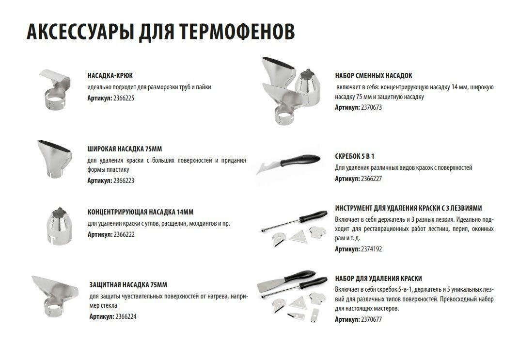 Фен технический (строительный), ЗУБР ФТ-2000, насадки 3 шт, 2 режима: 350град/ 350л/мин, 650град/ 550л/мин, коробка, 2000Вт
