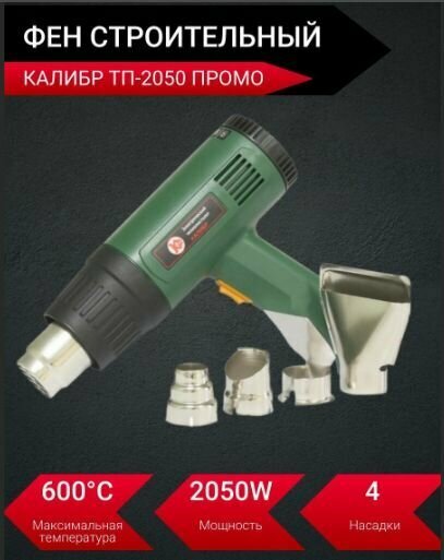 Фен строительный Калибр ТП-2050 промо / 2050Вт / 2 режима / Защита от перегрва /