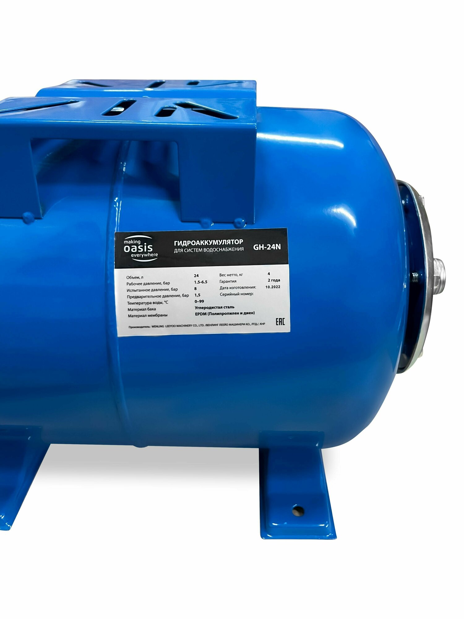 Купить Гидроаккумулятор Oasis GH-24N, для систем водоснабжения, горизонтальный, 24 л