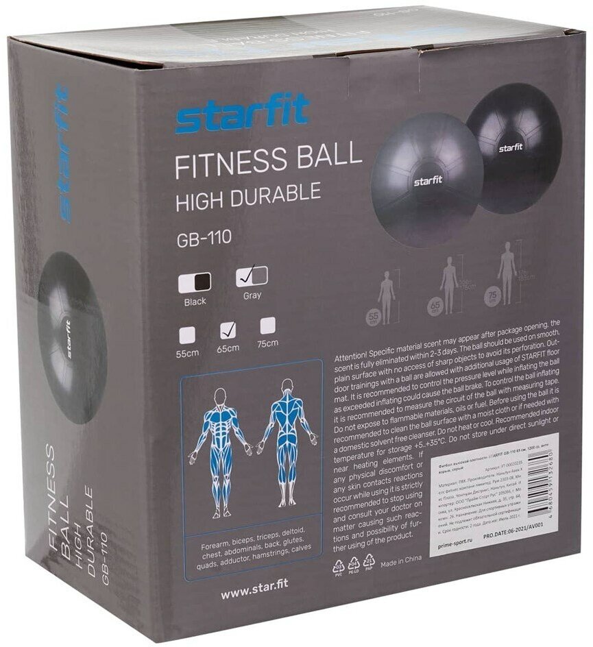 Фитбол высокой плотности GB-110 антивзрыв, 1400 гр, серый, 75 см, Starfit интересное: