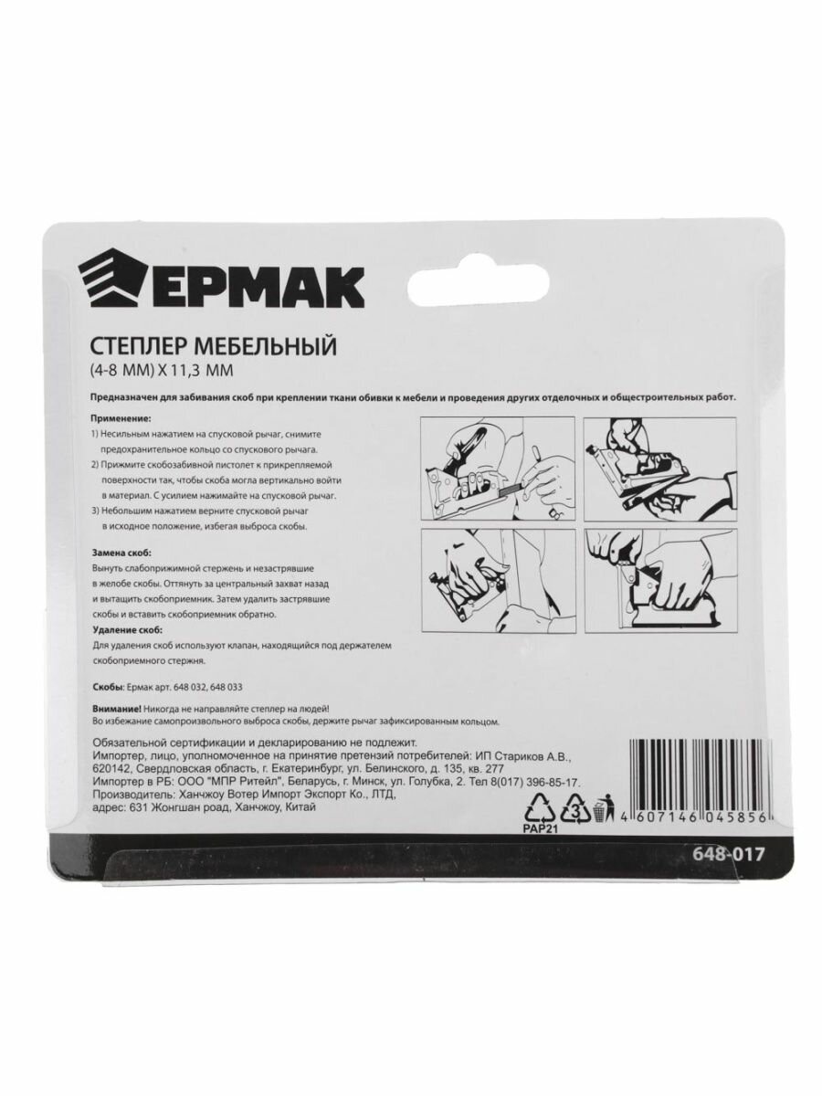 Степлер ермак 648-017 мебельный (4-8мм)*11,3мм интересное: