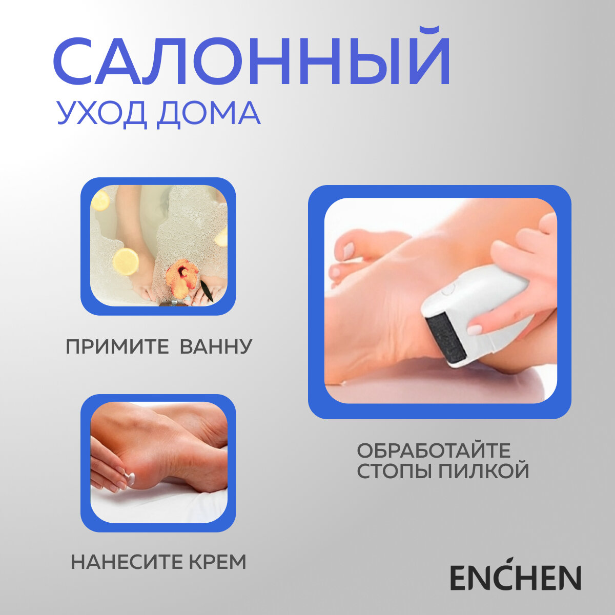 Электрическая роликовая пилка для пяток и ног Enchen Rock / Аккумуляторная терка для педикюра интересное: