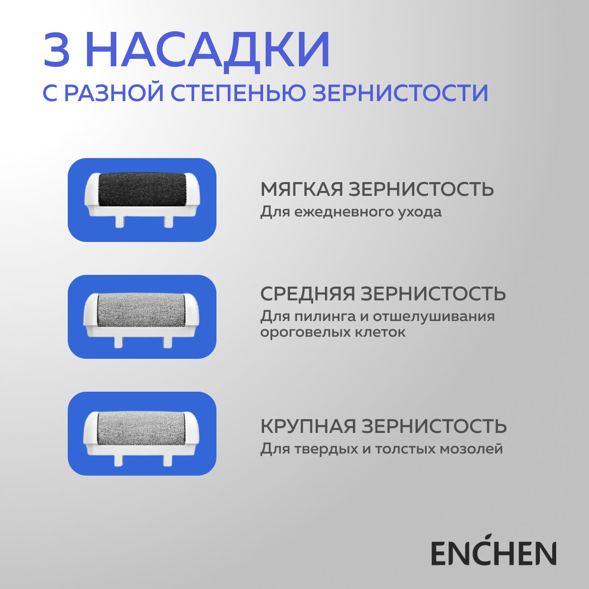 Электрическая роликовая пилка для ног и педикюра Enchen Rock Electric Foot Callus Remover / встроенный аккумулятор / 3 сменных ролика