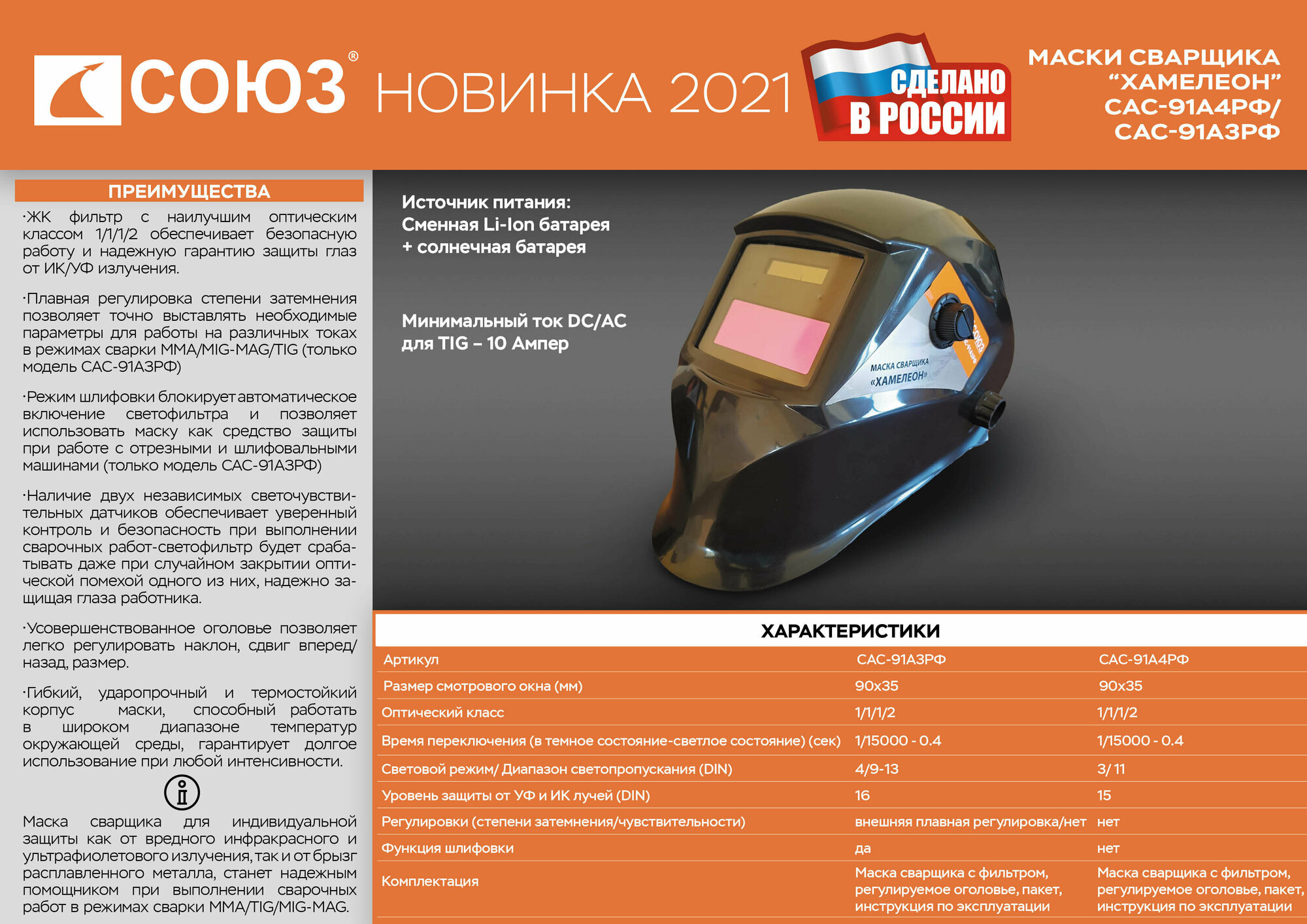 Маска сварщика Союз САС-91А4РФ хамелеон DIN 3-11 интересное: