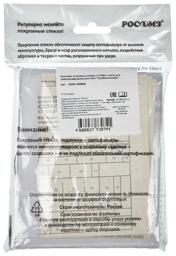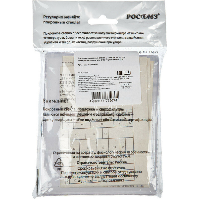 Купить Комплект покровных стекол 110х90 к щитку сварщика РОСОМЗ 00230