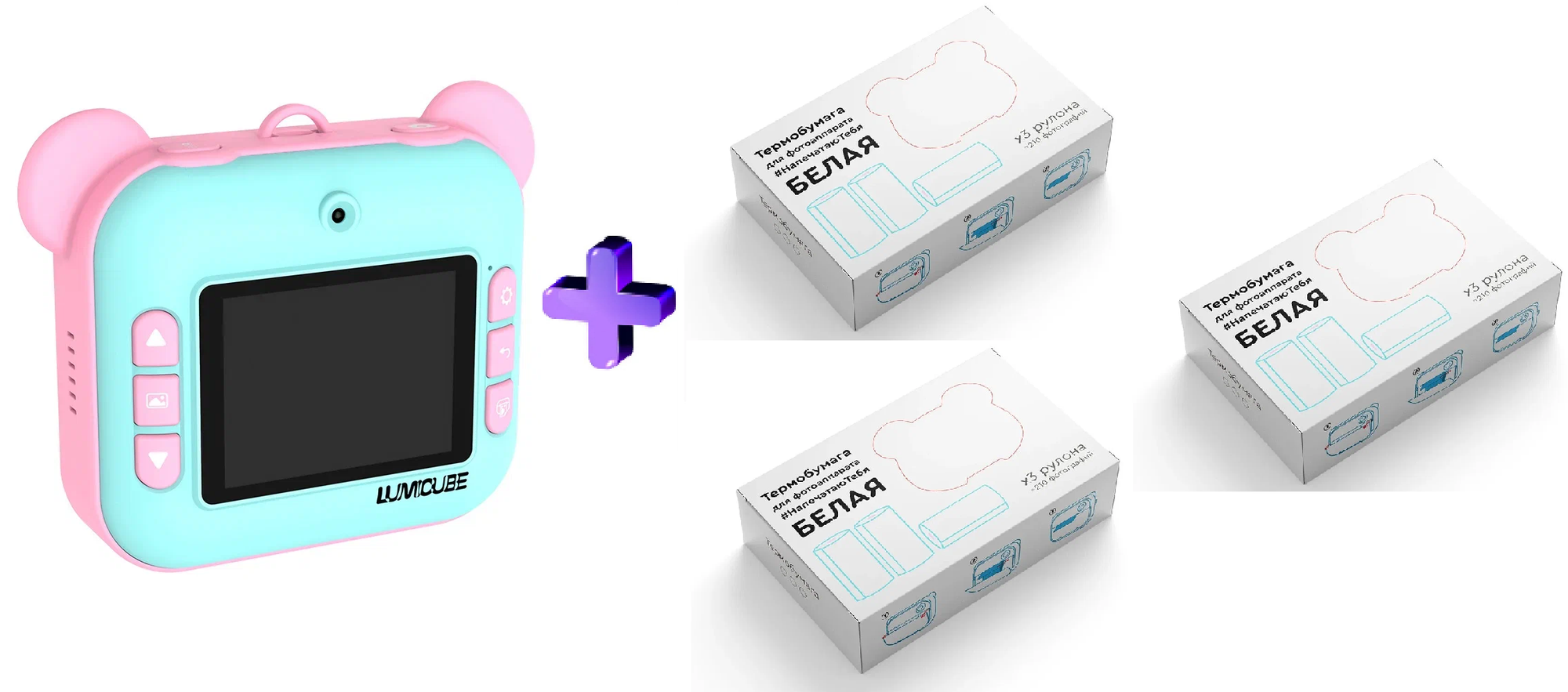Комбо: Фотоаппарат моментальной печати LUMICAM PRINTY DK04 pink + Термобумага белая для фотоаппарата LUMICAM PRINTY (3 упаковки) интересное: