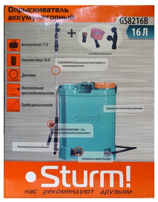 Ниже Вы можете прочитать отзывы на Опрыскиватель аккумуляторный Sturm! GS8216B, ознакомится с подробными характеристиками, посмотреть интересные обзоры и фотографии на Опрыскиватель аккумуляторный Sturm! GS8216B.