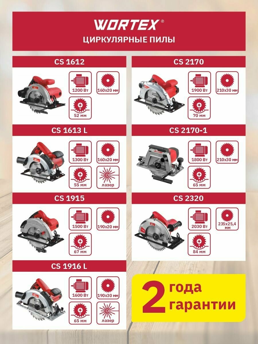 Циркулярная пила дисковая по дереву электрическая WORTEX CS 1916 L (CS1916L00021)