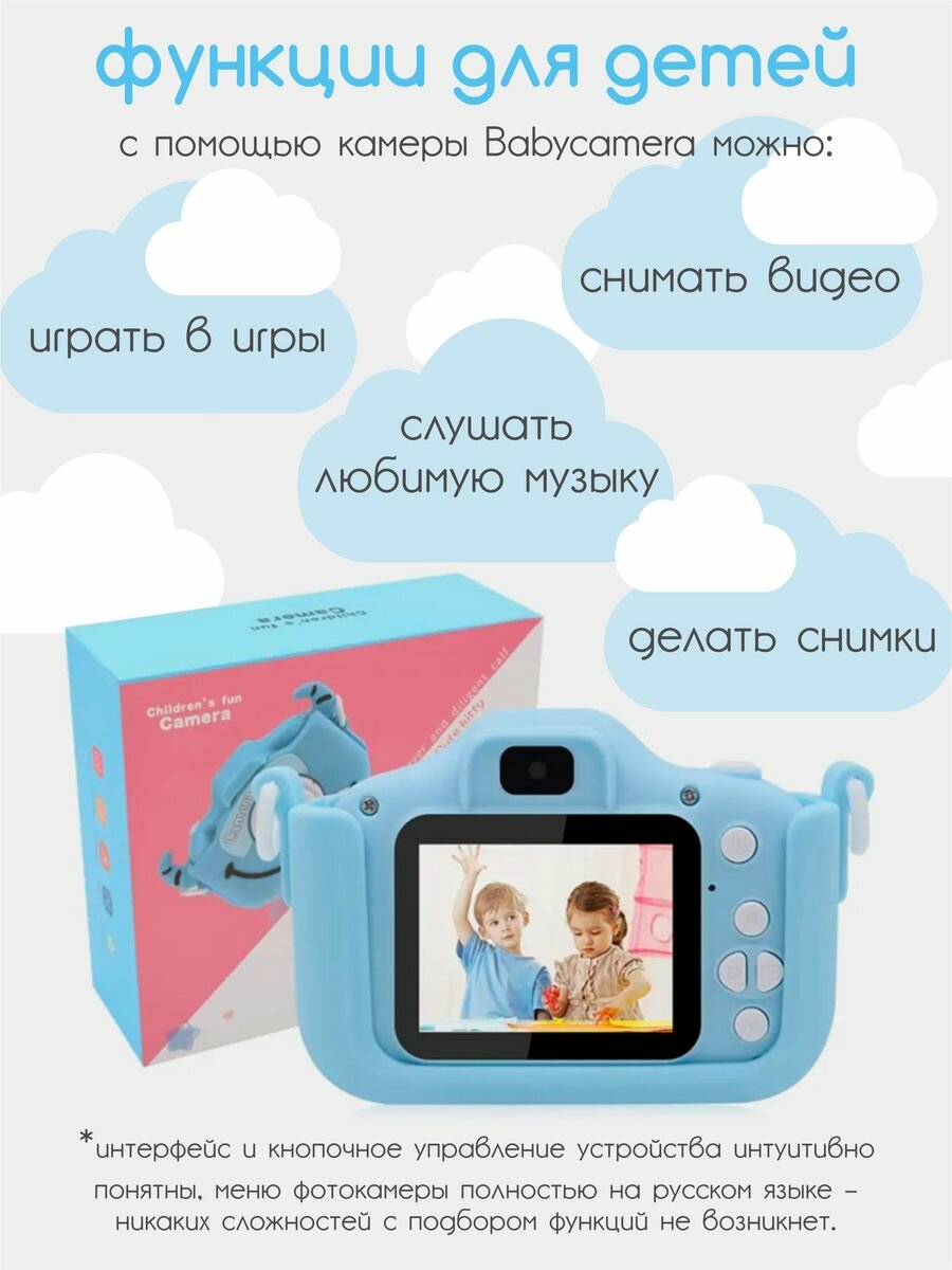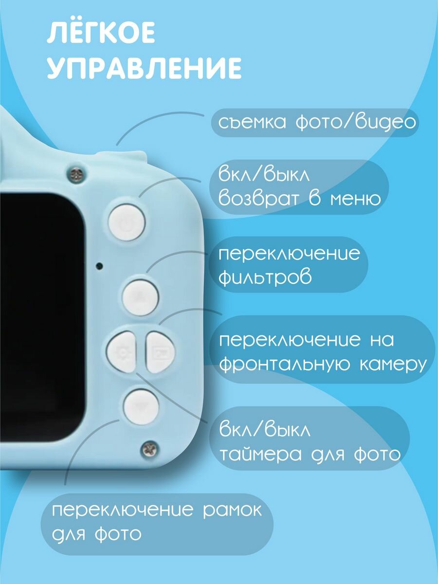 Ударопрочный детский фотоаппарат для девочек 1080p Full-HD со встроенной памятью цифровая камера с 3 играми и селфи, Кitty голубой интересное: