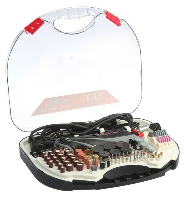 P.I.T. Гравер P.I.T. PMG150-С PRO, 150 Вт, гибкий вал, цанга 3.2 мм, 33000 об/мин, 211 предметов