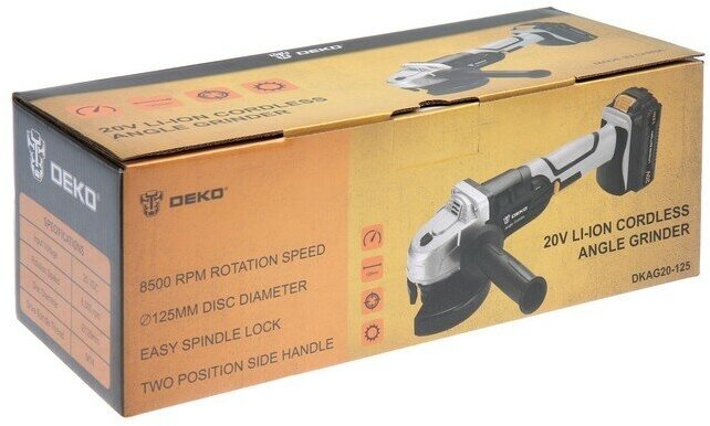 Аккумуляторная УШМ DEKO DKAG20-125 1.5 А·ч х1 коробка, 125 мм