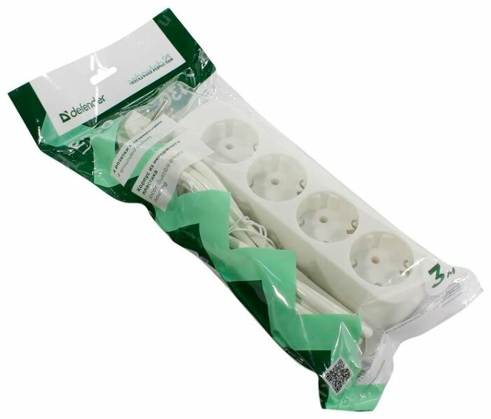 Удлинитель Defender E430 белый 3.0 м, 4 розетки