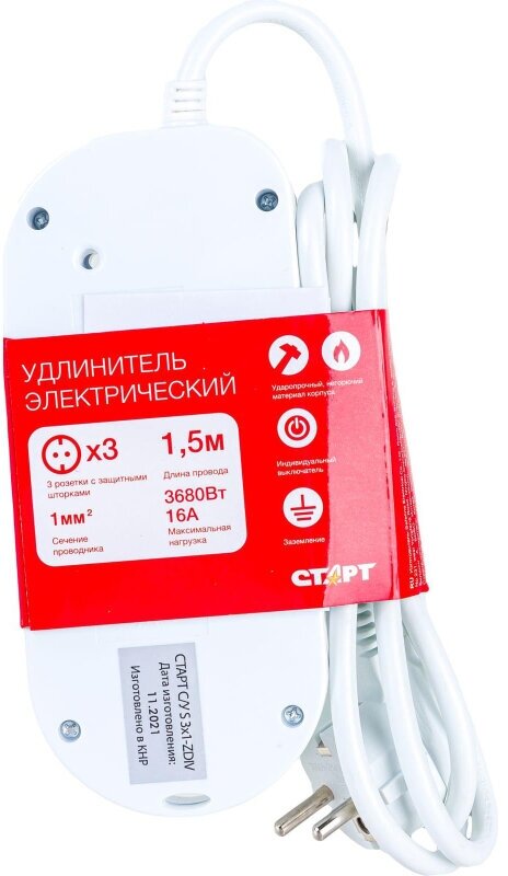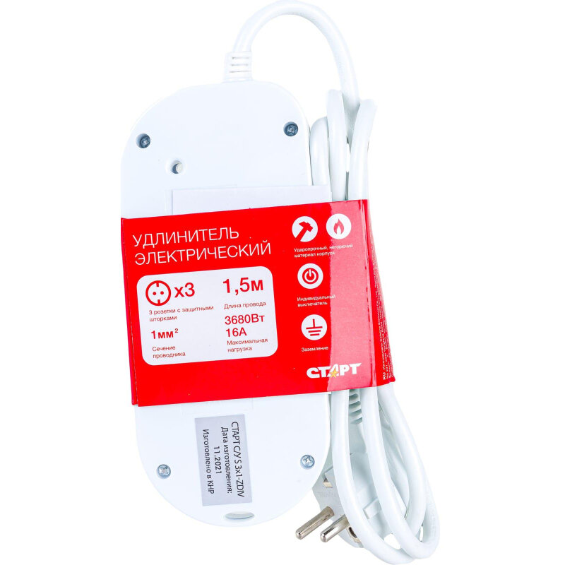 Удлинитель старт (С/У S 1-ZDIV) 3 розетки/1,5м/3680Вт/16А