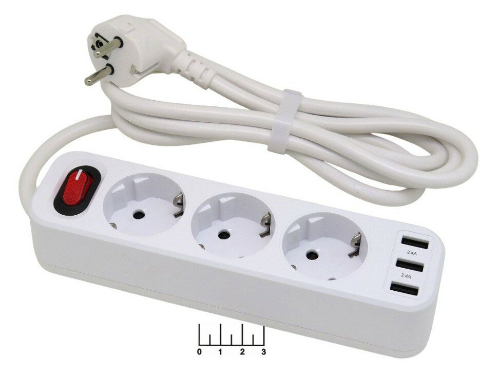 Купить Удлинитель сетевой, сетевой фильтр, розетка с USB (3гн, 3*USB) 1.8м NS2 белый HOCO