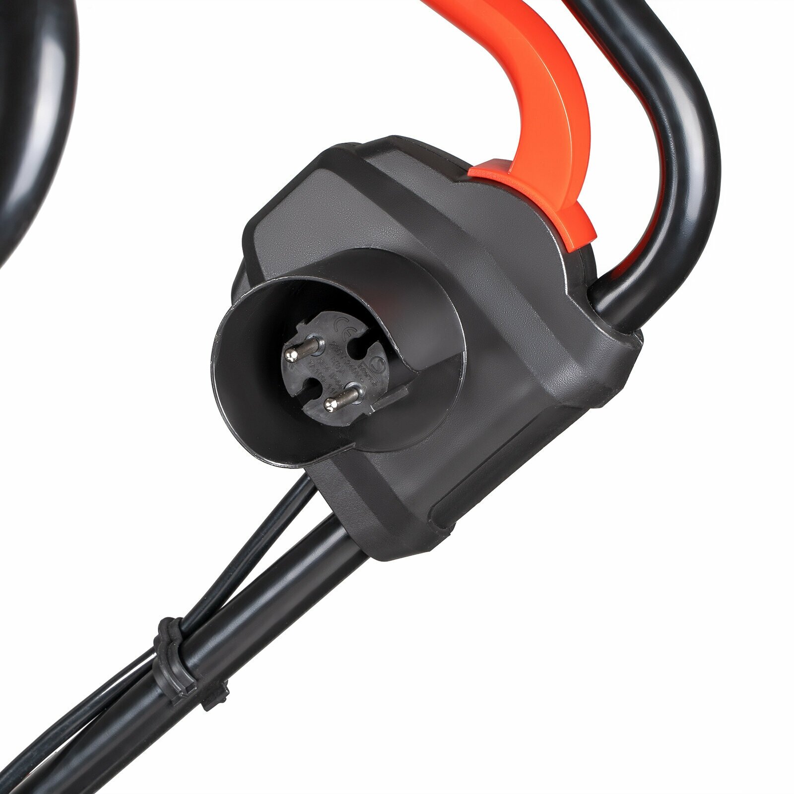 | Минусы: | Нет регулировки высоты ручки,чтобы ручку сложить надо муторно откручивать и удерживать и после этого некуда ее зафиксировать т.к. провод не отстёгивается. При покосе удлинитель все время мешается. |