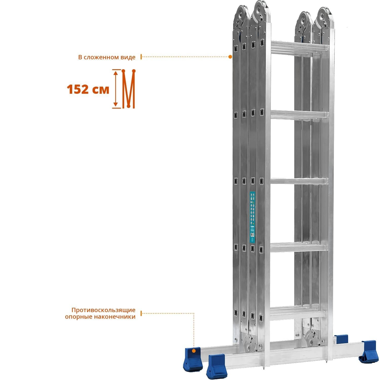 Четырехсекционная лестница-трансформер СИБИН, алюминиевая, 4x5 ступени, ЛТ-45