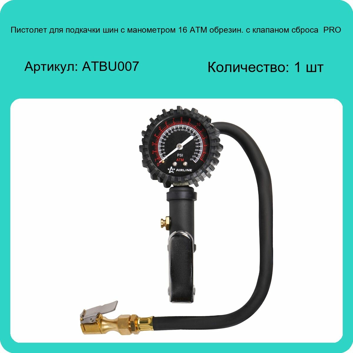 AIRLINE ATBU007 Пистолет для подкачки шин с манометром 16 АТМ обрезин. с клапаном сброса Airline PRO