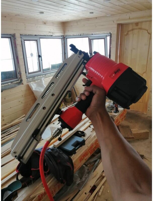 | Плюсы: | Нужно было прям срочно купить пневмопистолет, т.к. колотить миллион гвоздей в каркасном доме это долго. Компрессор у нас уже был. Пистолет работает отлично, стоит своих денег. Незаменимая вещь на стройке.