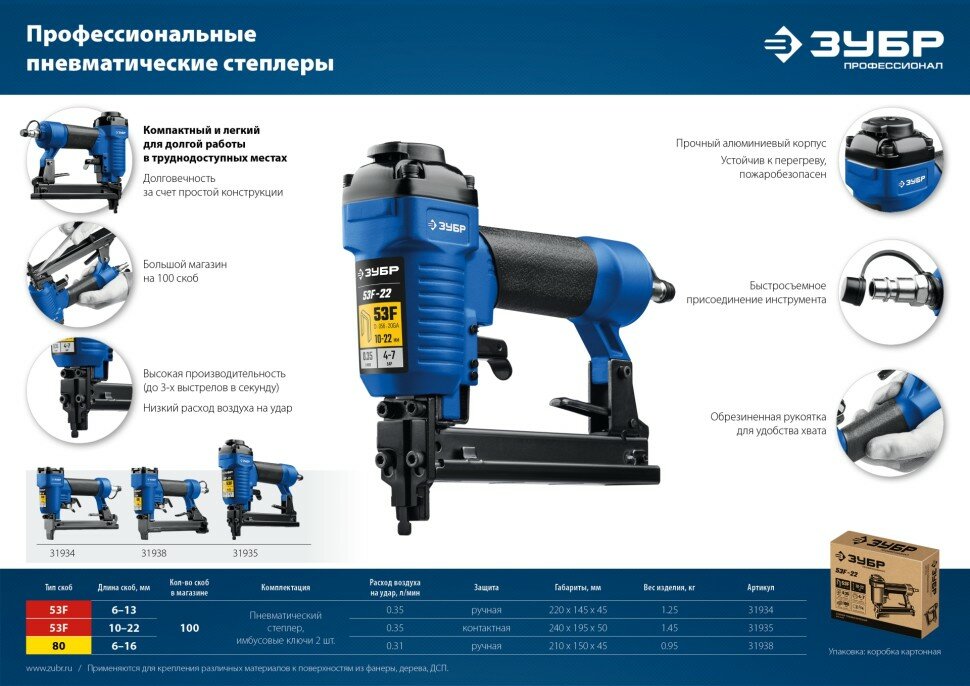 СохранитьСтеплер пневматический Зубр Professional/Профессионал 3190 интересное: