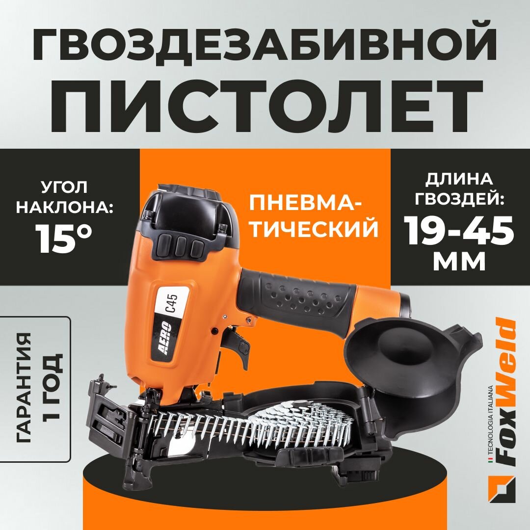 Пневматический гвоздезабивной пистолет Foxweld AERO C45