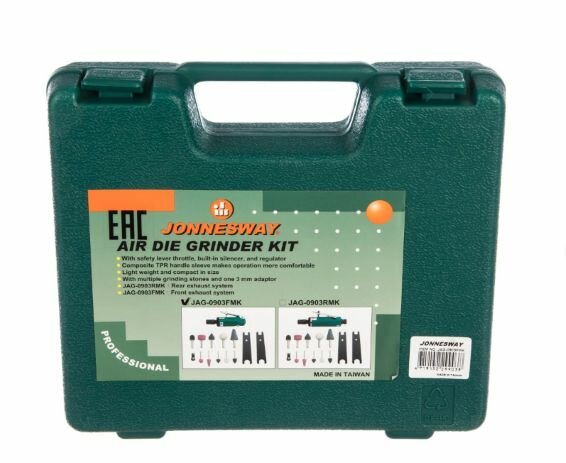 | Дополнительная информация | Бормашинка пневматическая JONNESWAY® JAG-0903FM Шлифовальные камни с хвостовиком 6 мм, 5 шт. Шлифовальные камни с хвостовиком 3 мм, 5 шт. Цанга сменная, под хвостовик Ø 3 мм. Ключи сервисные 2 шт. |