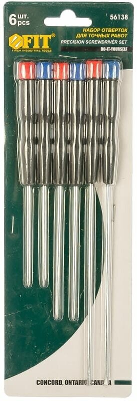 Отвертки FIT 56138 для точных работ удлиненные 6 шт., PH/SL