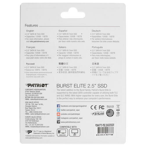 Внутренние твердотельные накопители SSD Patriot Memory Burst Elite 120Gb Pbe120gs25ssdr .