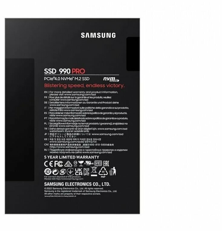 Твердотельный диск Samsung 990 PRO 1TB M.2, PCI-E 4.0 x4, TLC 3D NAND [R/W - 7450/6900 MB/s] /EU MZ-V9P1T0BW