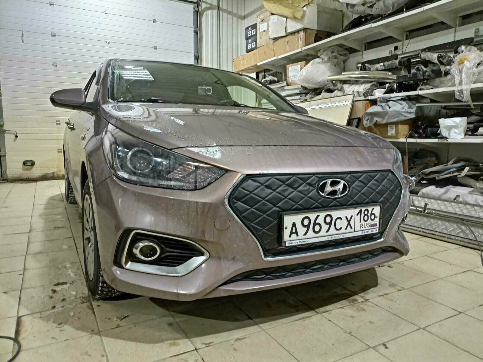 Купить Утеплитель решетки радиатора зимний для Hyundai Solaris 2017-2020 Строчка Чёрная Ромбы Комплект