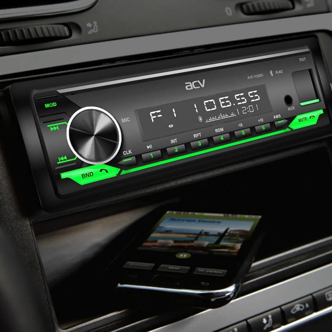 Автомобильный ресивер с Bluetooth, поддержкой ACV RC и ACV Control, зеленая подсветка ACV AVS-928BG