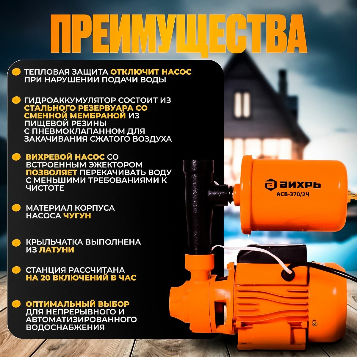 Насосная станция для дома и дачи вихрь АСВ-370/2Ч