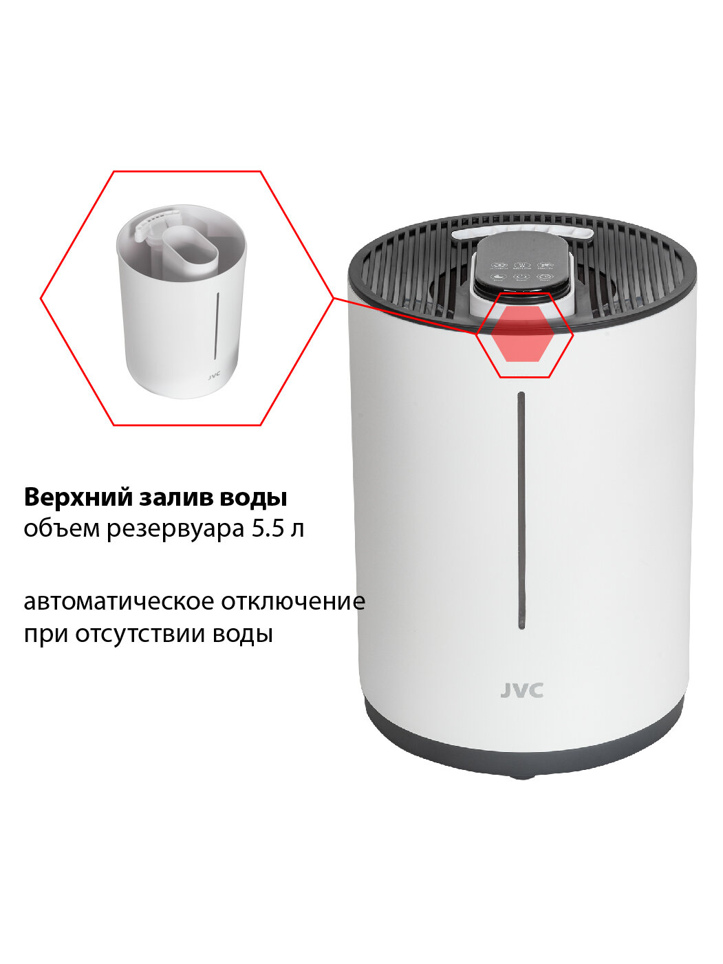 Увлажнитель воздуха ультразвуковой JVC JH-HDS50 white с сенсорным управлением, 3 уровня подачи пара, УФ-лампа, ночник 7 цветов, пульт ДУ, 25 Вт интересное: