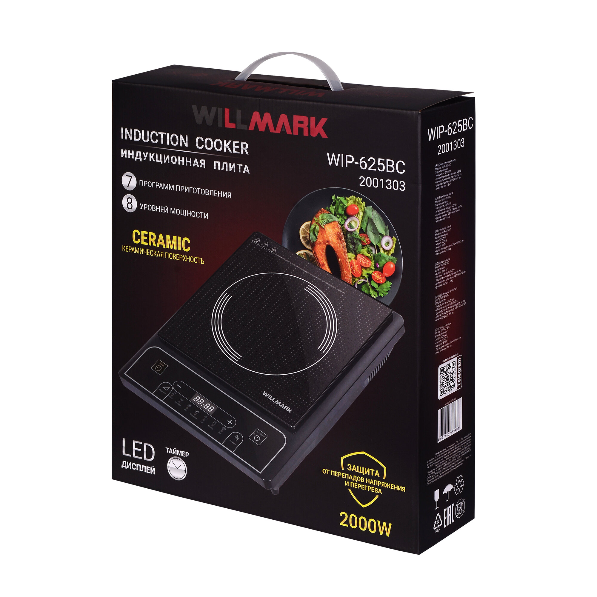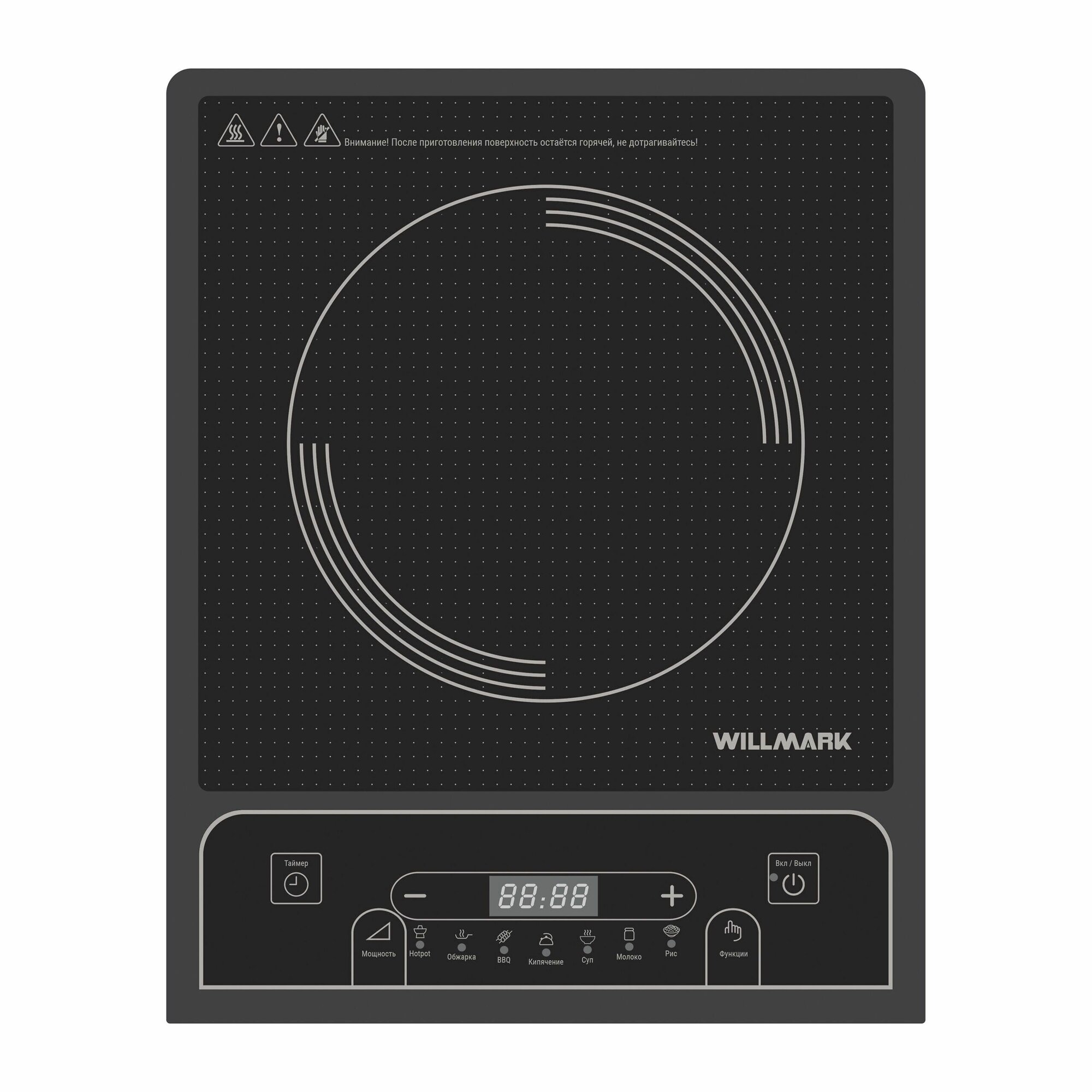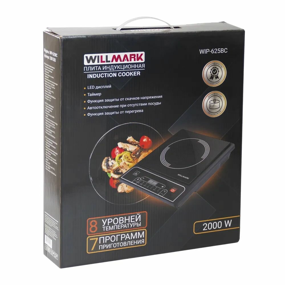 Плита индукционная WILLMARK WIP-625BC ( 2000Вт, 1 конф., 8 уровней темп., 7 программ) интересное: