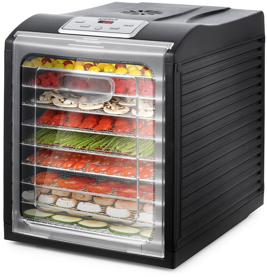 Сушилка для овощей и фруктов КТ-1921, 800 Вт, 8 сеток и 1 поддон, чёрная