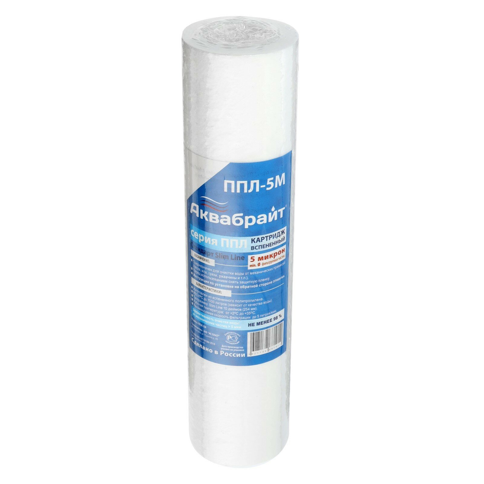 Сменный картридж Аквабрайт ППЛ-5М, SL10, вспененный полипропилен, 5 мкм