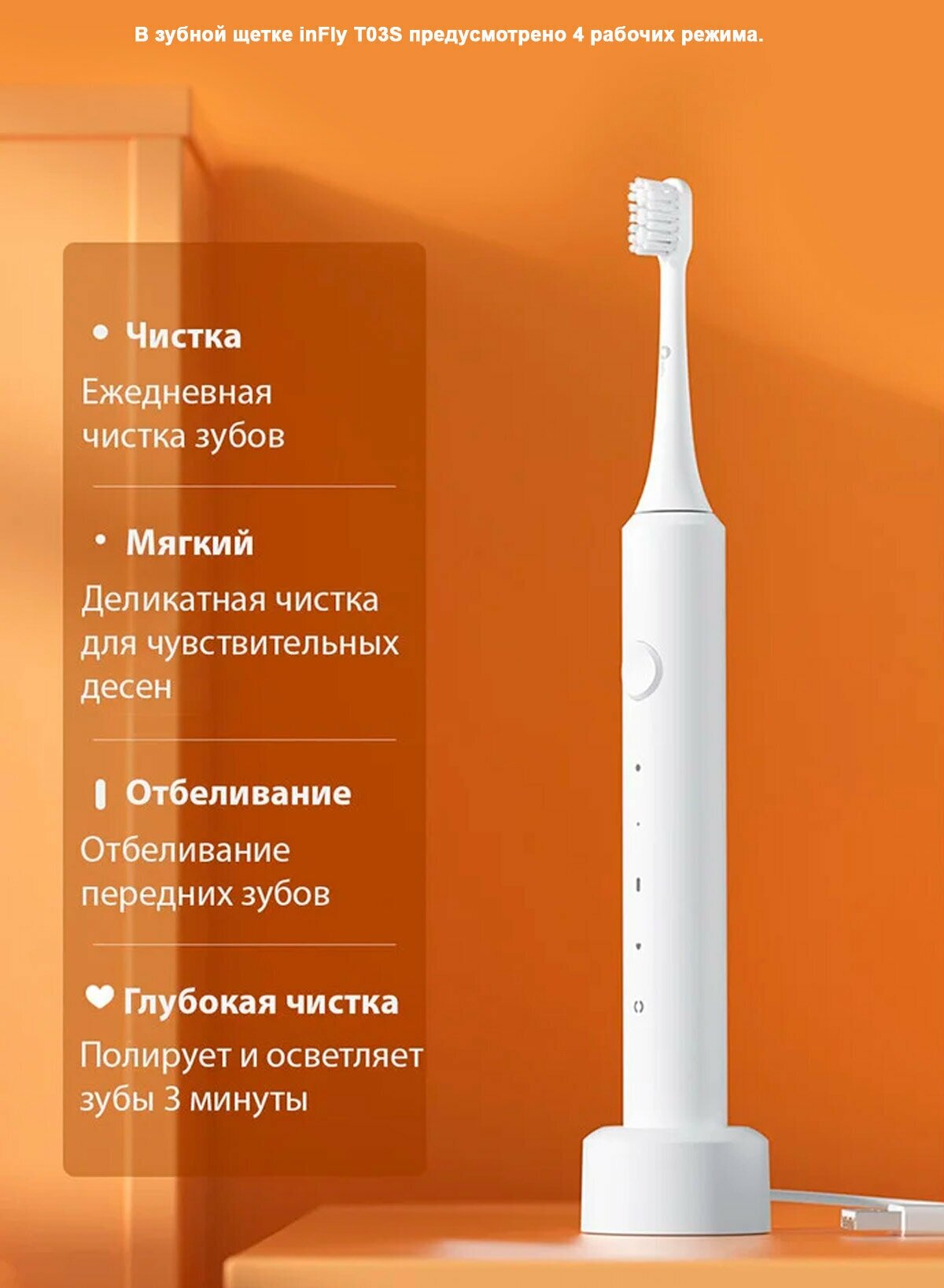 | Режимы работы | деликатная чистка / ежедневная чистка / отбеливание / полировка |