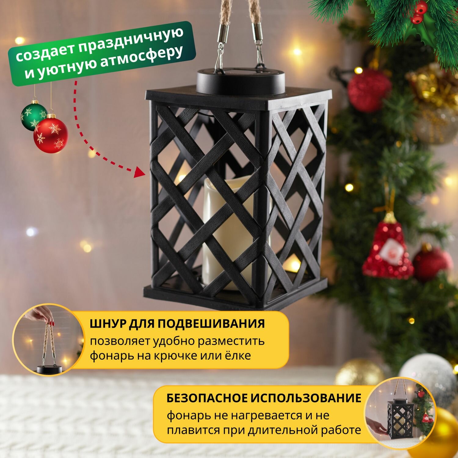 Декоративный фонарь на солнечной батарее 14х14х24 см, черный резной корпус, теплый белый цвет свечения NEON-NIGHT