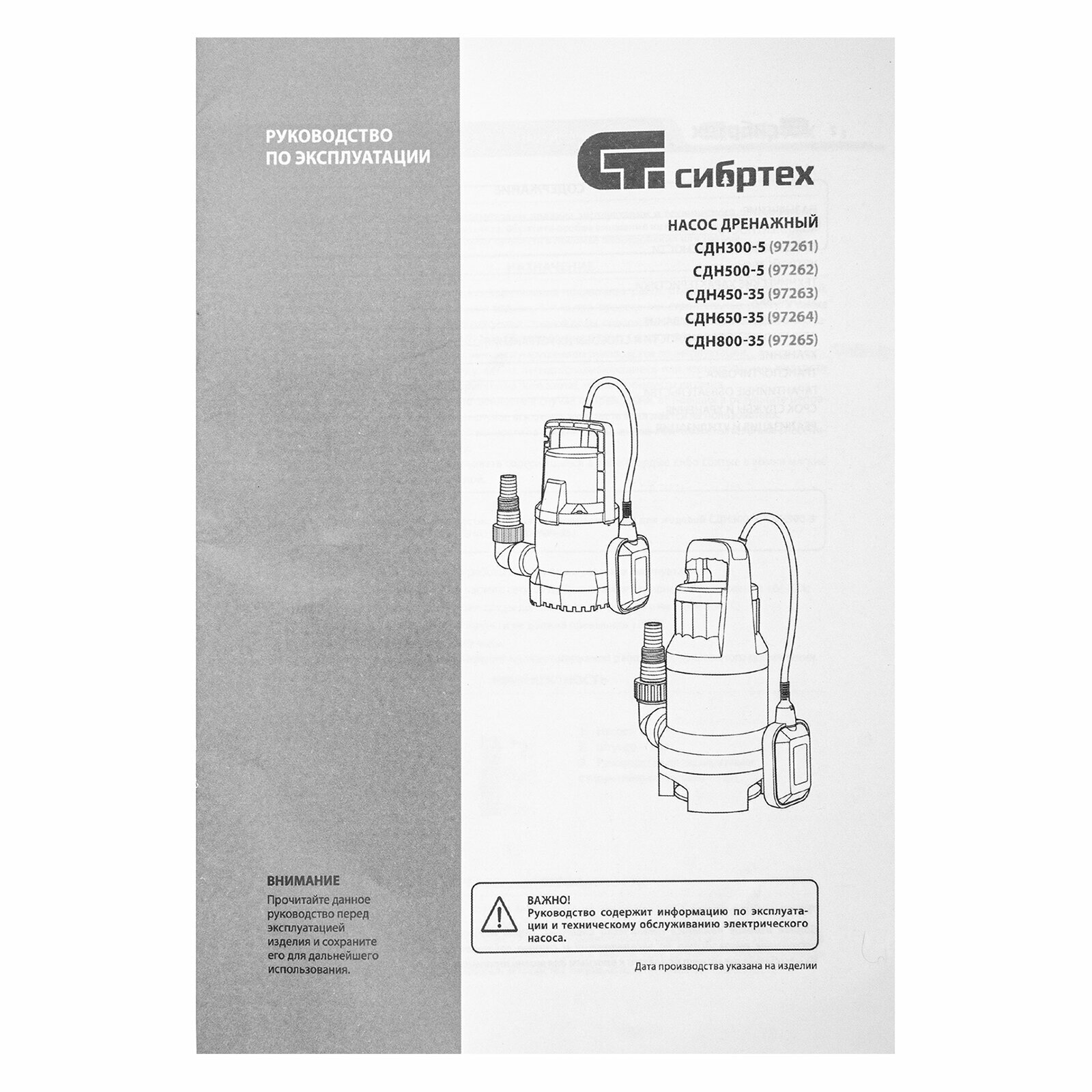Дренажный насос для грязной воды Сибртех СДН450-35, 450 Вт, напор 5, 5 м, 8000 л/ч 97263