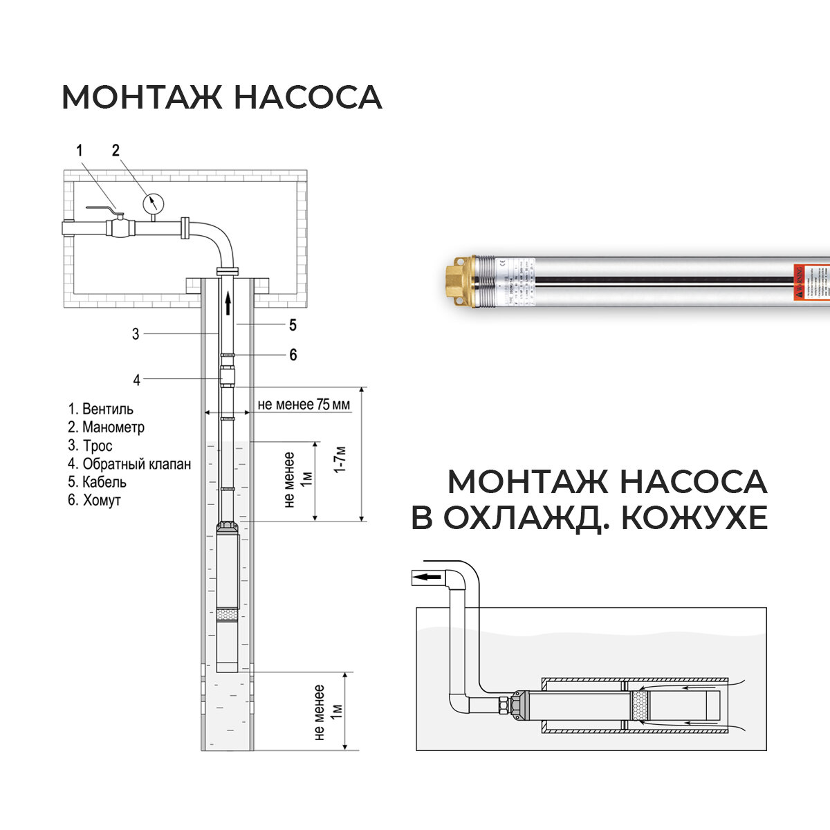 Скважинный насос Termica 3” 3SQ 3/65. Погружные скважинные насосы TERMICA серии 3SQ являются центро- бежными одноступенчатыми насосами.