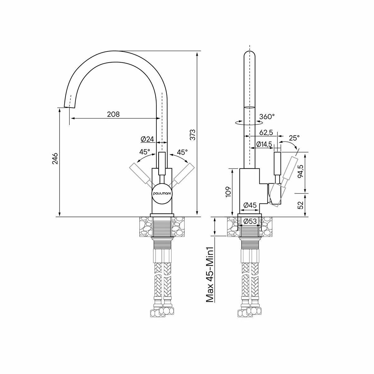Paulmark Смеситель для кухонной мойки Paulmark Holstein Ho212063-CR хром