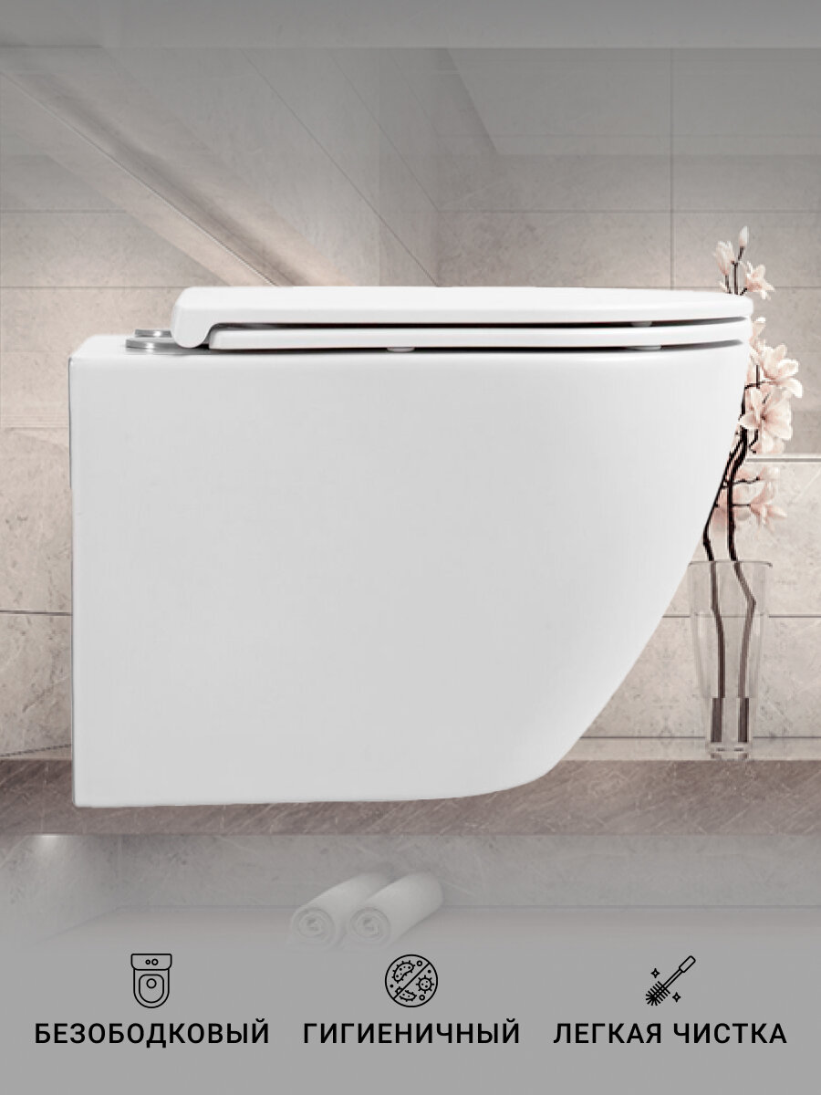 Унитаз подвесной безободковый SinteSi EVI белый матовый с крышкой-сиденьем дюропласт, микролифт