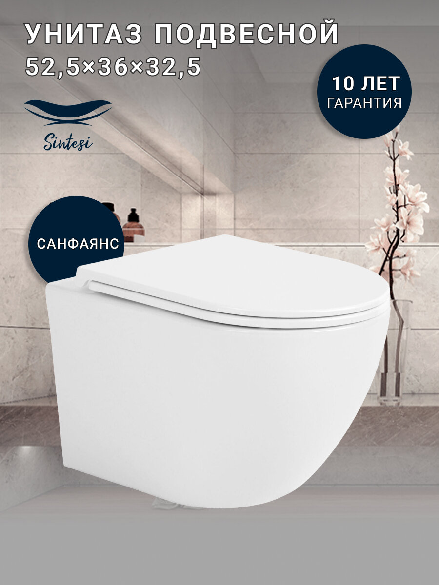 Унитаз Sintesi Evi SIN-TS-EVI-151 подвесной Белый с сиденьем Микролифт