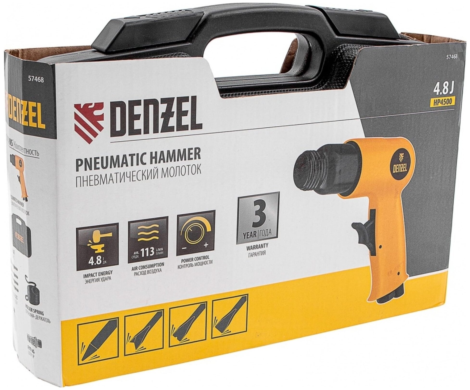 DENZEL 57468 пневматический молоток НР4500 набор насадок, 113