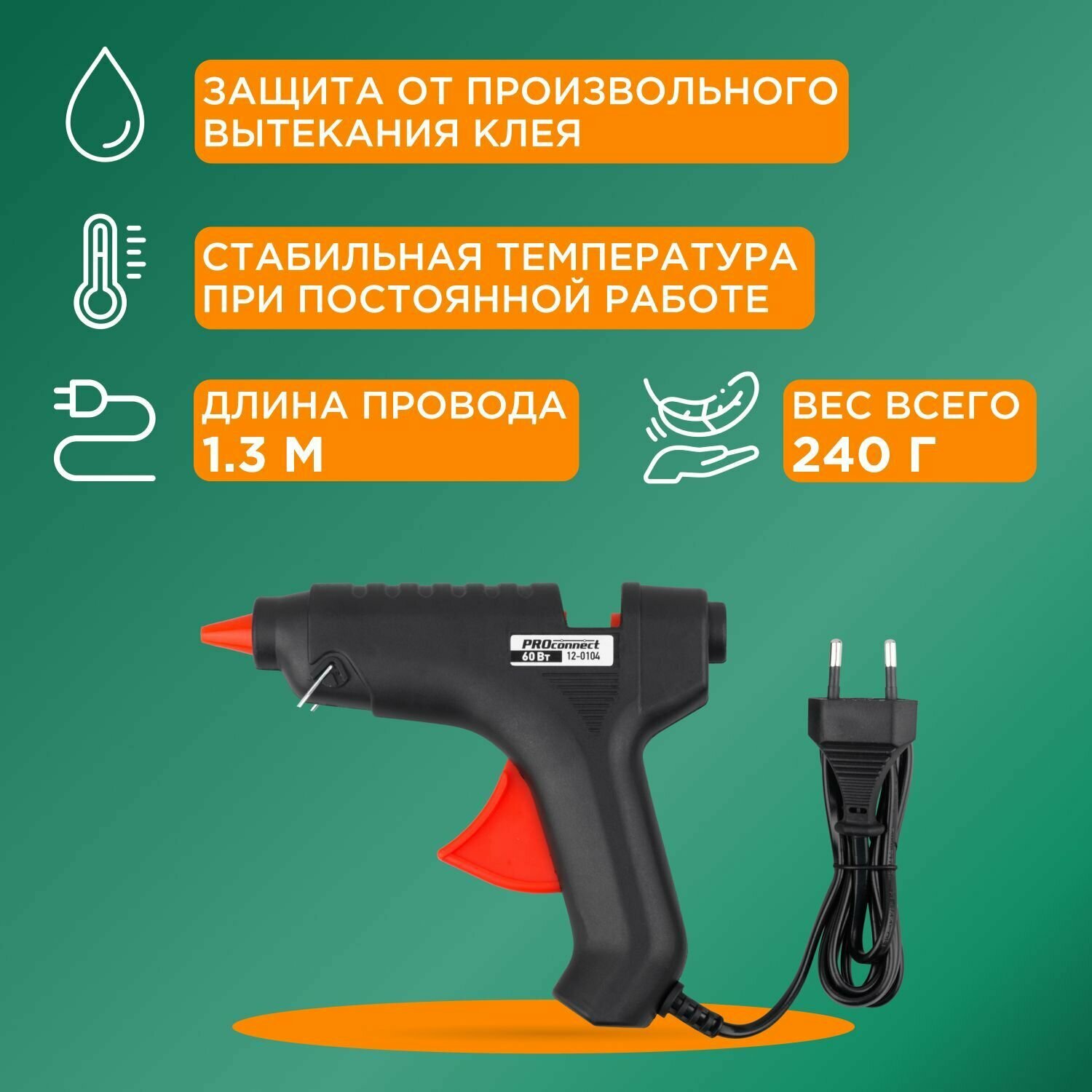 Клей Proconnect Пистолет клеевой PROconnect, 60 Вт, Ø11 мм, блистер
