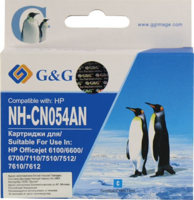 Картридж струйный G&G NH-CN054AN голубой (14мл) для HP Officejet 6100/6600/6700/7110/7510