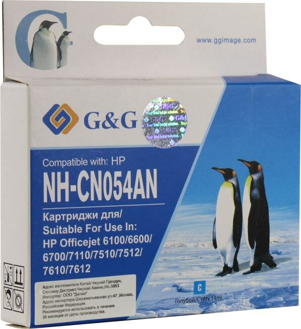 Картридж G&G NH-CN054AN, голубой, для струйного принтера, совместимый